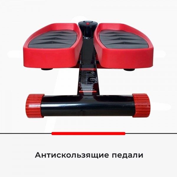 Конструкция использует для создания нагрузки гидравлический привод с пружинной амортизацией (каждые 20 минут следует делать перерыв). Педали выполнены с антискользящим покрытием. В комплект входит специальный защитный коврик.