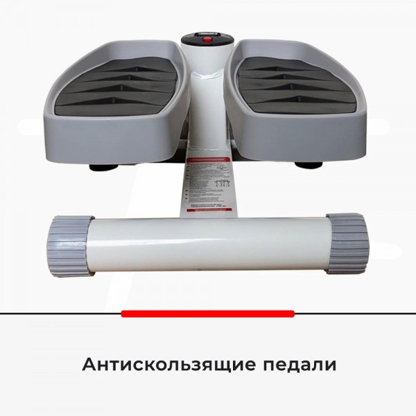 Конструкция использует для создания нагрузки гидравлический привод с пружинной амортизацией (каждые 20 минут следует делать перерыв). Педали выполнены с антискользящим покрытием. В комплект входит специальный защитный коврик.