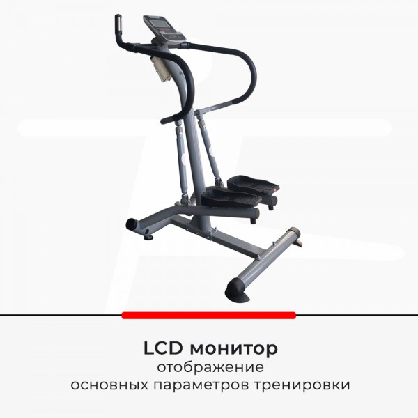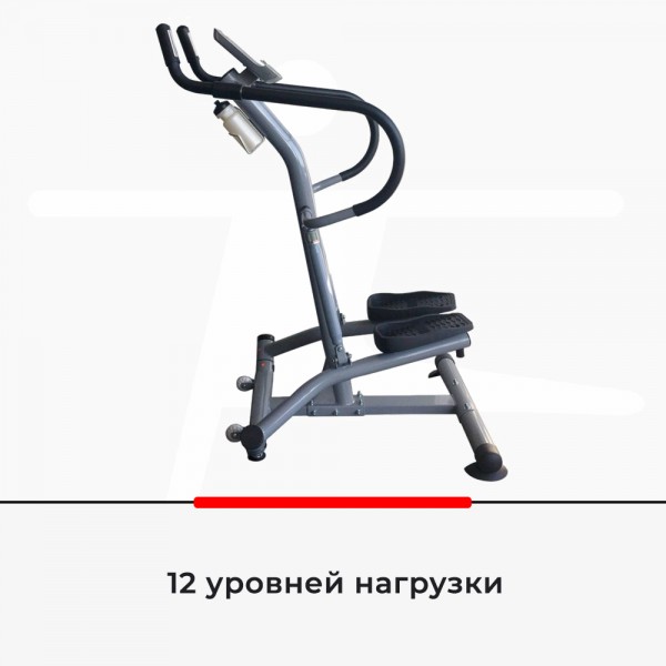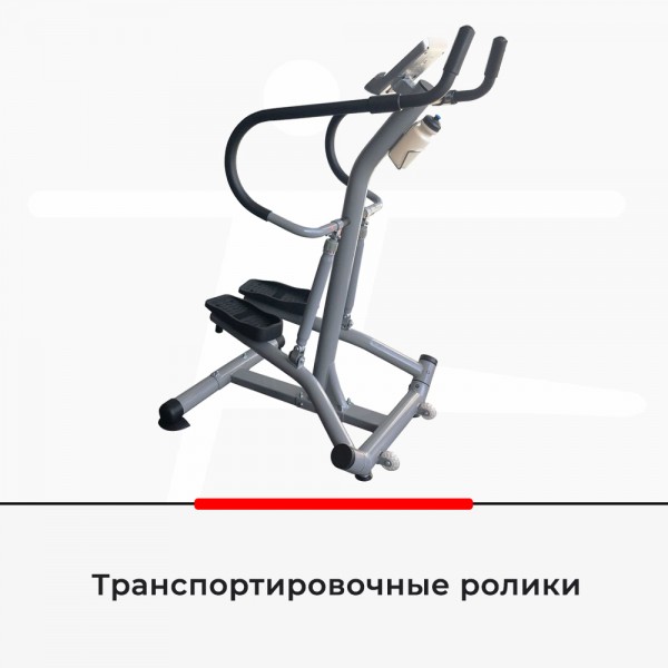 Конструкция с гидравлическим сопротивлением предлагает 12 уровней сложности. На поручнях расположены датчики контроля пульса. Есть ролики для транспортировки и бутылка для воды ( креплением на раме).