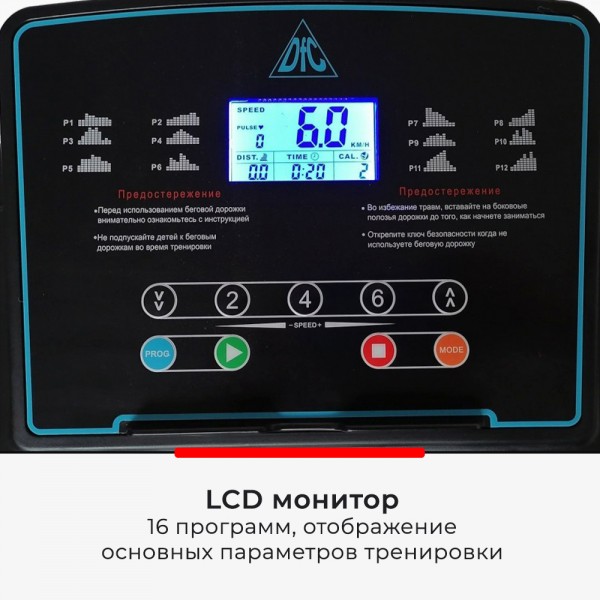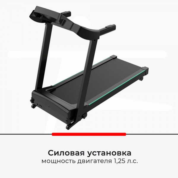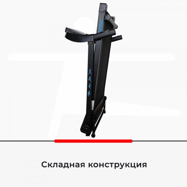 Спортсмен может заниматься со скоростью до 12 км/ч. На поручнях тренажера встроены сенсоры частоты пульса, также показания можно передать с помощью беспроводного кардиопояса (в комплект не входит). Наклон дорожки можно изменить вручную. Тренажер легко компактно сложить.