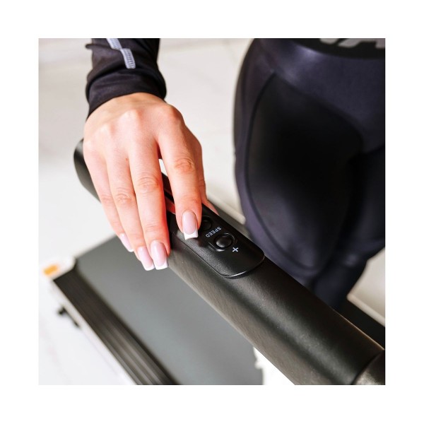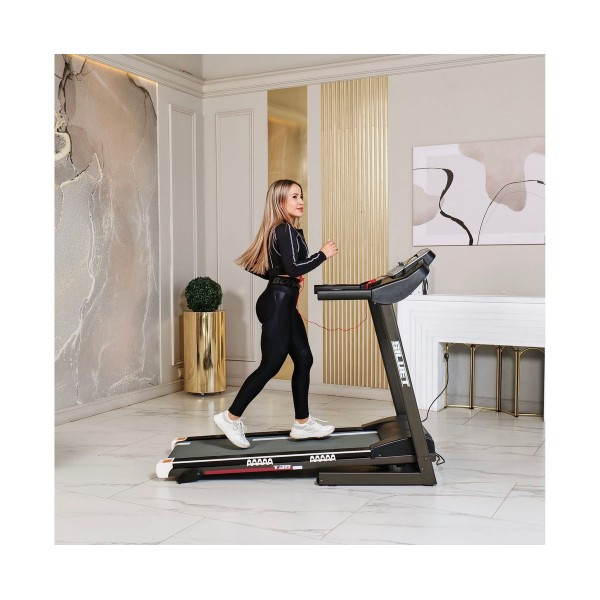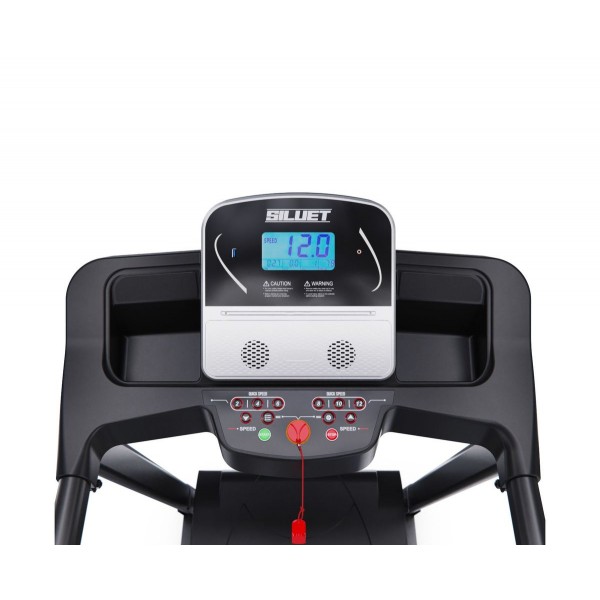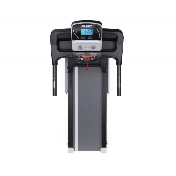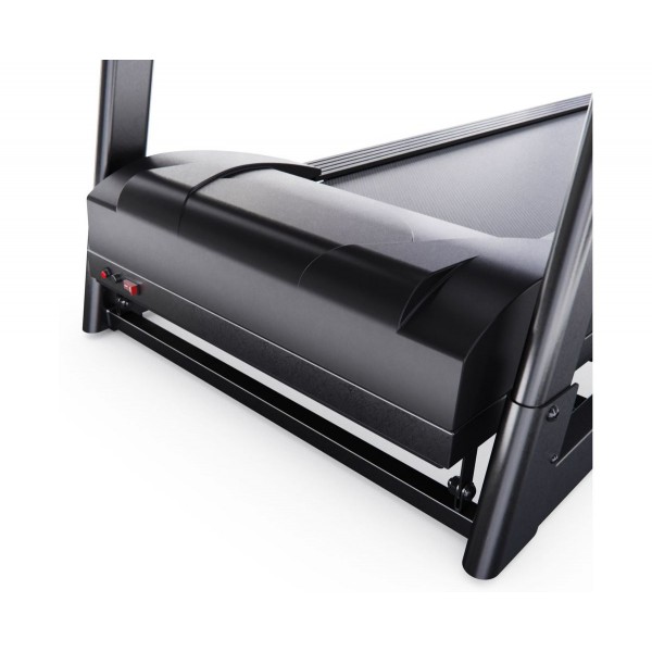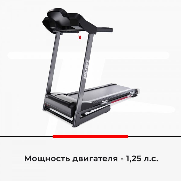 Мотор на 1,25 л.с. позволяет пользователю разогнаться до 16 км/ч. При необходимости увеличить нагрузку можно приподнять вручную полотно - есть три уровня (до 4 градусов). Беговая зона имеет размер 120 на 42 см. На поручнях можно не только проверить частоту пульса, но и задать нужную скорость движения. Конструкция включает амортизаторы, за счет чего происходит уменьшении вредного ударного воздействия на суставы.