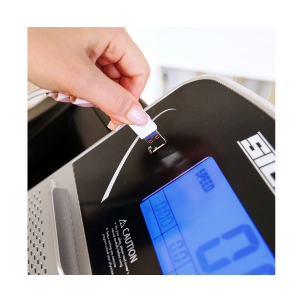 Чтобы тренировка была не скучной, тренажер имеет встроенные динамики и возможность подключение аудио-источника через MP3 или USB. На большом экране легко выбрать одну из 19 программ и проследить за такими параметрами забега: