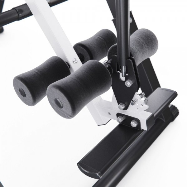Конструкция позволяет получить три варианта наклона (20/40/60 градусов) или можно расположить тренажер под 180 градусов (головой вниз). Подходит для роста 131-190 см. Комплектуется страховочным ремнем.
