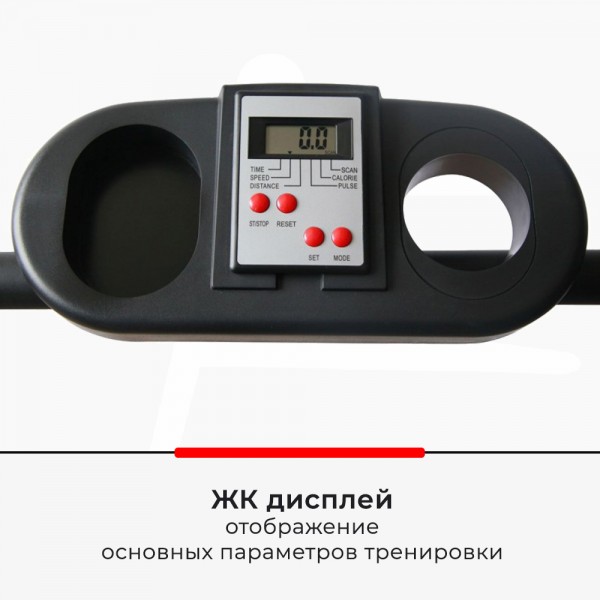 Скорость движения на тренажерах такой конструкции не ограничена, а нагрузка меняется в ручную (8 уровней). Данные пульса передаются датчиками на поручне. Тренажер можно компактно сложить.