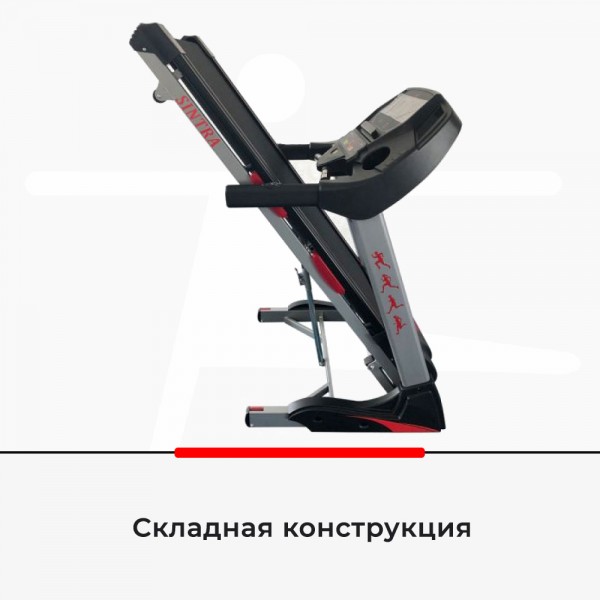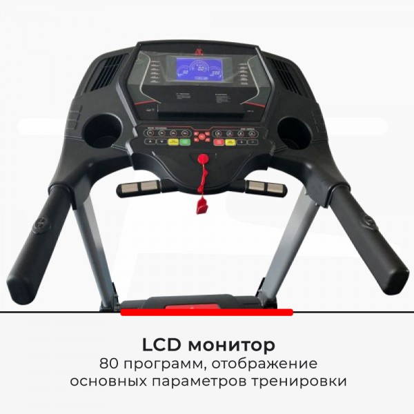 Тренажер оборудован системой амортизации и мощным двигателем на 4 л. с., что обеспечивает скорость до 24 км/ч. Угол наклона многослойного полотна можно менять до 22 градусов (электронно).