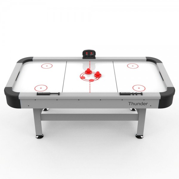 DFC THUNDER - игровой стол для аэрохоккея. Модель работает от электросети. Комплектуется электронным приспособлением для ведения счета игры, двумя механическими счетчиками, двумя битами и двумя шайбами. Толщина поля 3 мм.