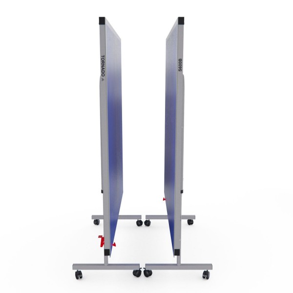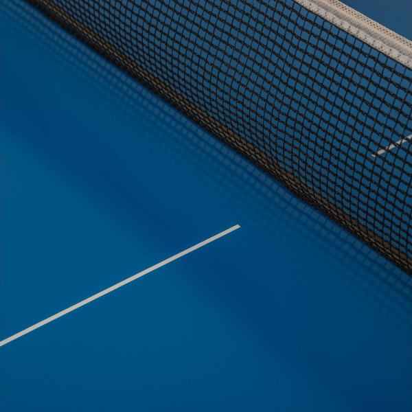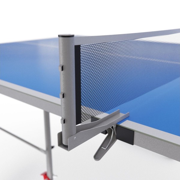Каждая из половин столешницы имеет вращающуюся опору с двумя вариантами фиксации. Стол складывается и транспортируется на восьми роликах (4 с фиксацией). Сетка в комплекте.