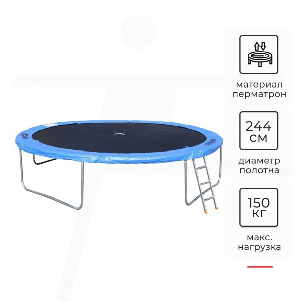 Конструкция включает 48 износостойких пружин, закрытых специальным чехлом. Для прыжковой поверхности применяется наиболее современный материал Перматрон. Отдельно можно приобрести лестницу.