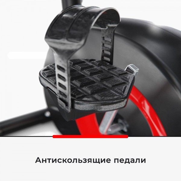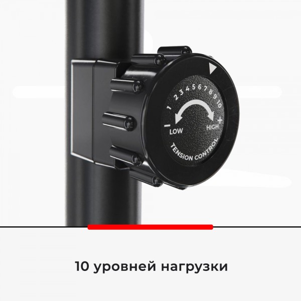 Конструкция основана на раме, которая выдержит спортсмена весом до 110 кг и маховике с инерционным весом 11 кг (реальный вес 6 кг). Регулятор позволяет установить 8 вариантов нагрузки вручную. Есть проверка пульса на поручнях.