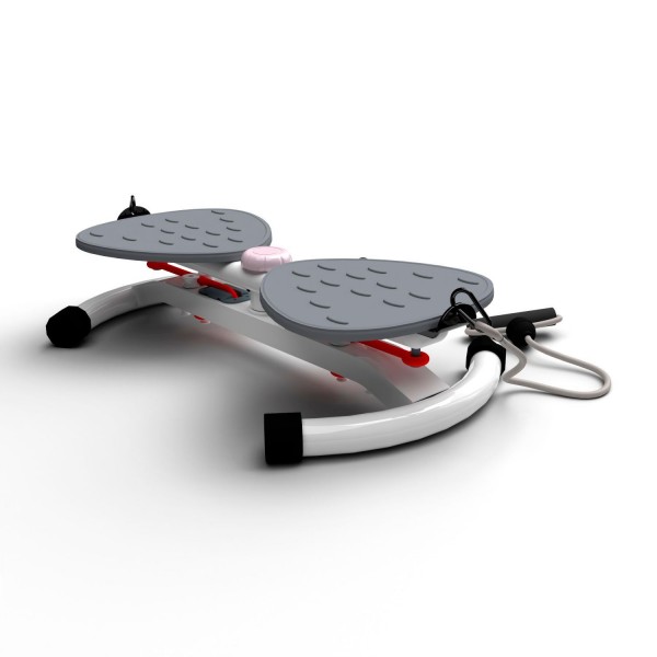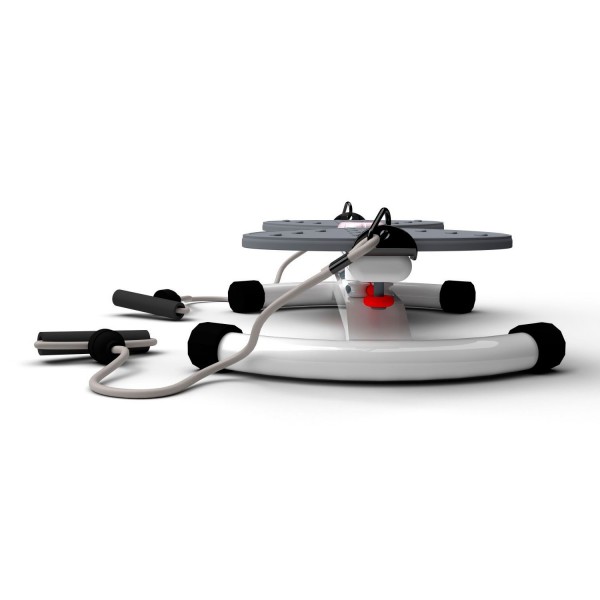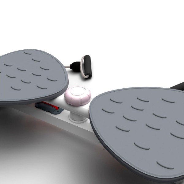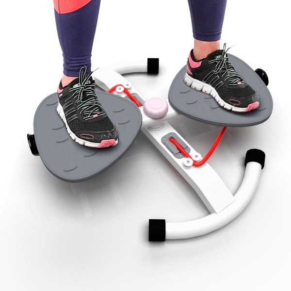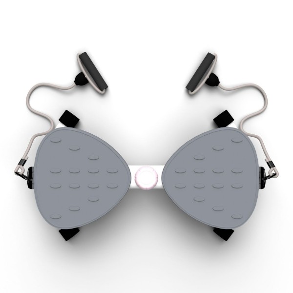 Конструкция тренажера позволяет выполнять поворот корпуса до 90 градусов вправо или влево, что позволяет создать нагрузку на мышцы пресса. Поворотом ручки можно выбрать 2 уровня сложности. Рифленые педали расположены с комфортным интервалом 8,5 см. Длина эспандеров - 83 см.