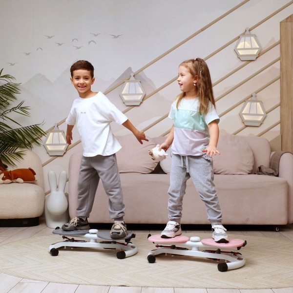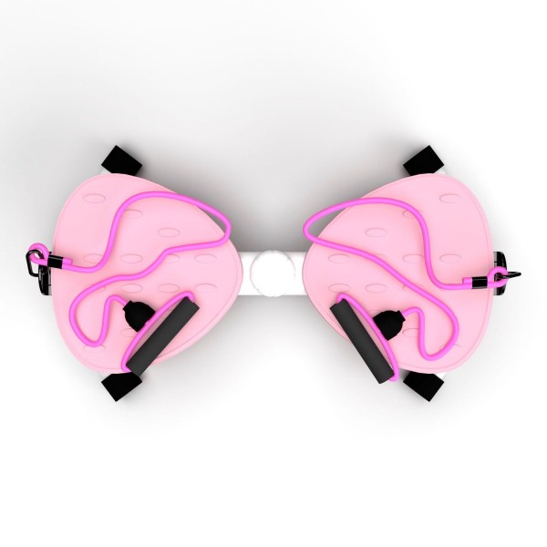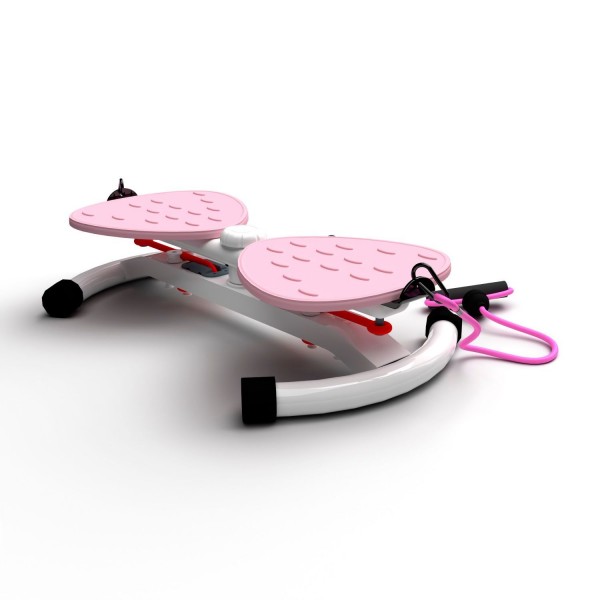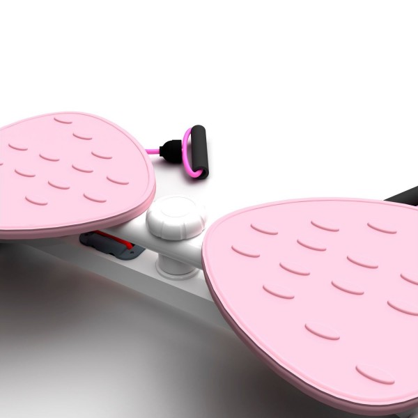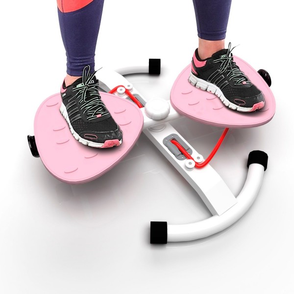 Конструкция тренажера позволяет выполнять поворот корпуса до 90 градусов вправо или влево, что позволяет создать нагрузку на мышцы пресса. Поворотом ручки можно выбрать 2 уровня сложности. Рифленые педали расположены с комфортным интервалом 8,5 см. Длина эспандеров - 83 см.