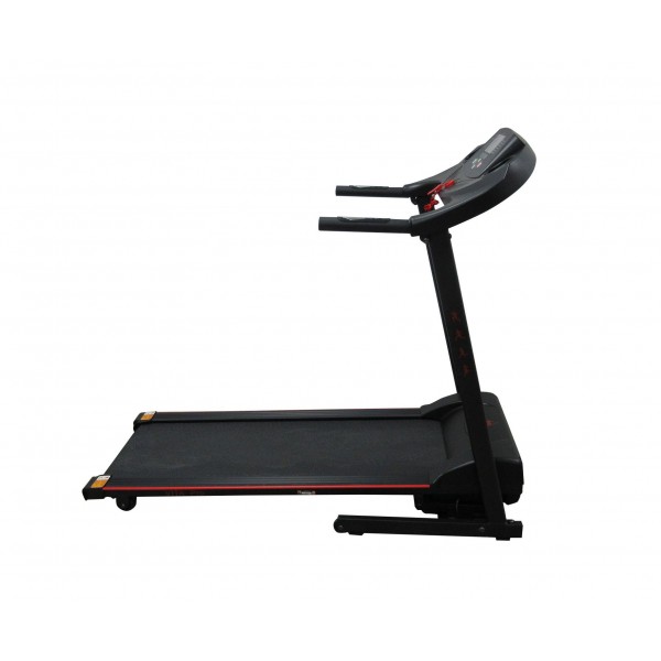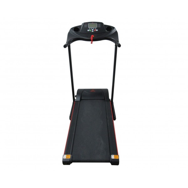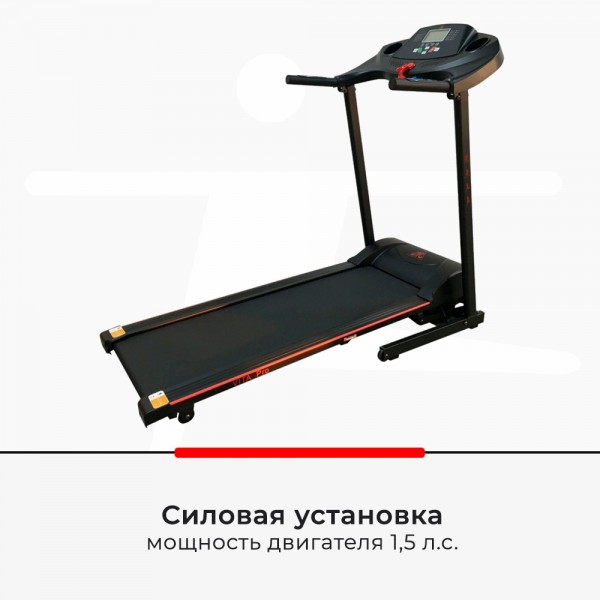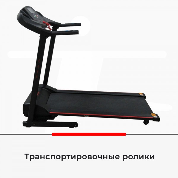 Скорость спортсмена на тренировке может достигать двенадцати км/ч. Корректировка наклона дорожки дополнительно регулирует нагрузку. На поручнях модели есть клавиши для быстрого контроля параметров движения и сенсоры контроля работы сердца. Отдельно можно подключить более точный кардиопояс (в комплект не входит). Тренажер имеет возможность складывания.
