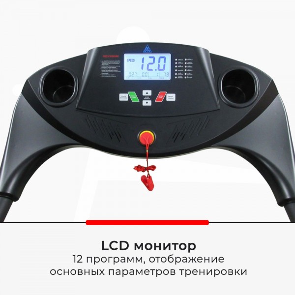 Дорожка имеет 12 встроенных программ. На экране отображаются параметры занятия: