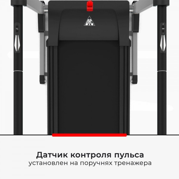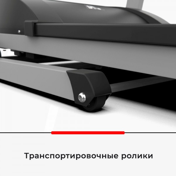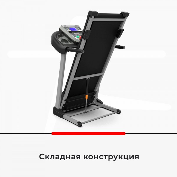 Конструкция имеет съемные поручни и надежное полотно толщиной 1,8м мм. Дополнительный ремень в комплекте обеспечит полную безопасность занятия. Тренажер оснащен мотором на 2,5 л.с., что позволяет достичь скорости 8 км/ч. Менять скорость можно на поручнях дорожки, там же встроены сенсоры пульса. Предусмотрено 3 варианта наклона, перестановка выполняется вручную.