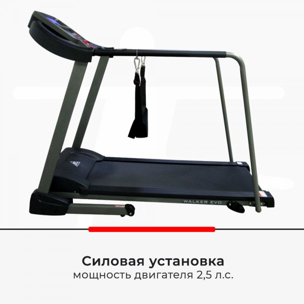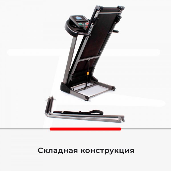 Конструкция модели основана на двигателе мощностью 2,5 л.с., возможная скорость движения от 0,4 до 8 км/ч (с шагом 0,1). Тренажер использует улучшенную систему скольжения полотна, чтобы при низкой скорости исключить перегрев двигателя и снизить трение. Длинные поручни с прорезиненной поверхностью обеспечат безопасность нахождения на полотне, а специальный поясничный ремень на липучке с карабинами гарантирует комфорт пожилым пользователям. Предусмотрено изменение наклона полотна, что позволит увеличить нагрузку после начального периода реабилитации (при снятии опор). Есть датчики контроля пульса и система складывания для компактного хранения.