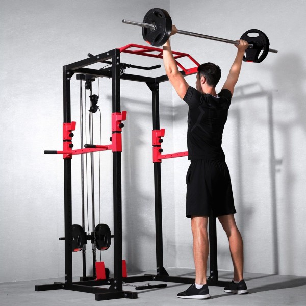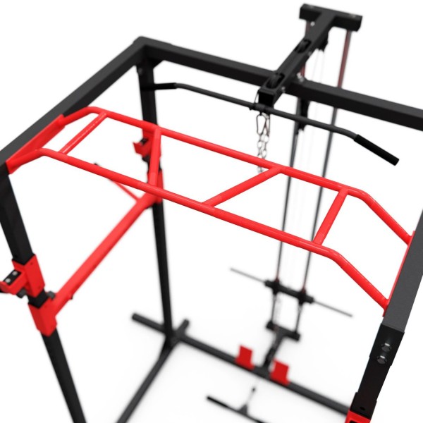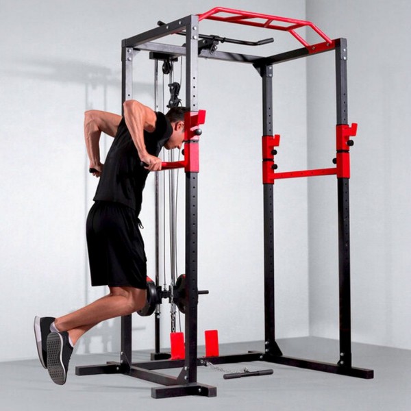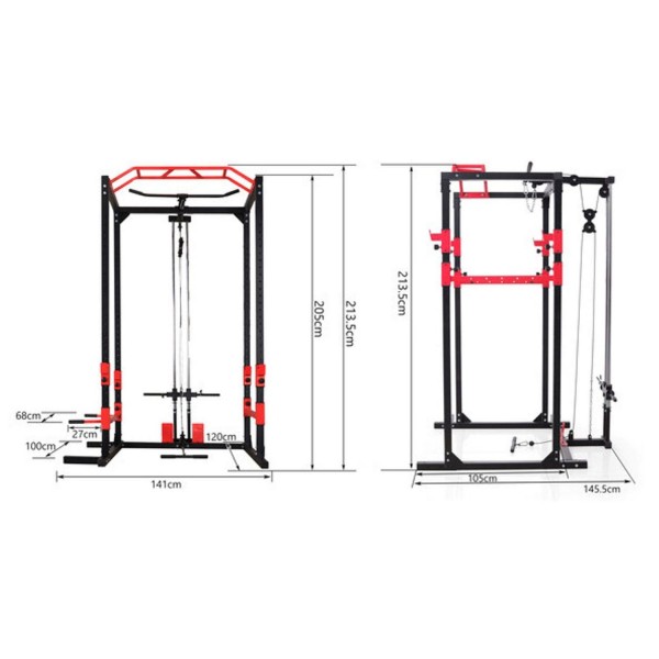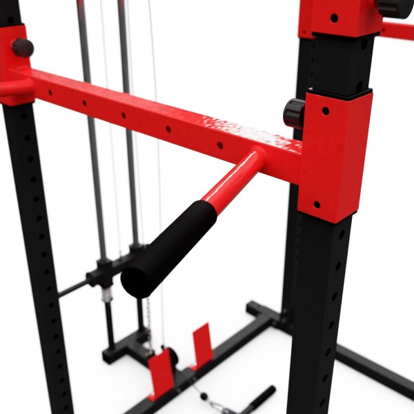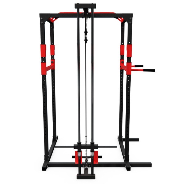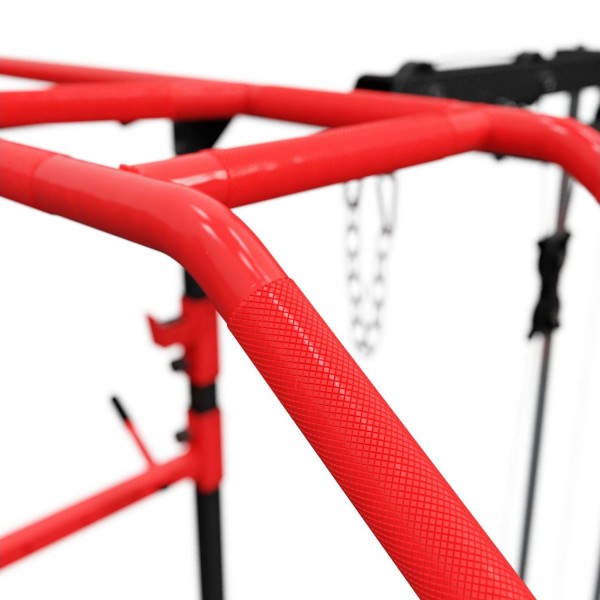 DFC Well Active – надежная рама для упражнений со штангой, которая дополнительно оборудована турником и брусьями, а также верхней и нижней тягой. Нагрузка на держатели штанги до 200 кг, на турник 130 кг, на брусья 100 кг. Может использоваться с дисками 26 мм.