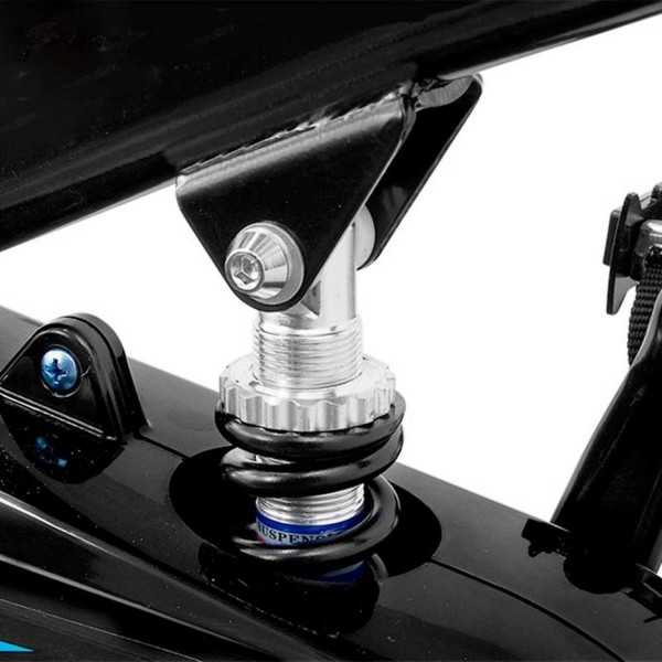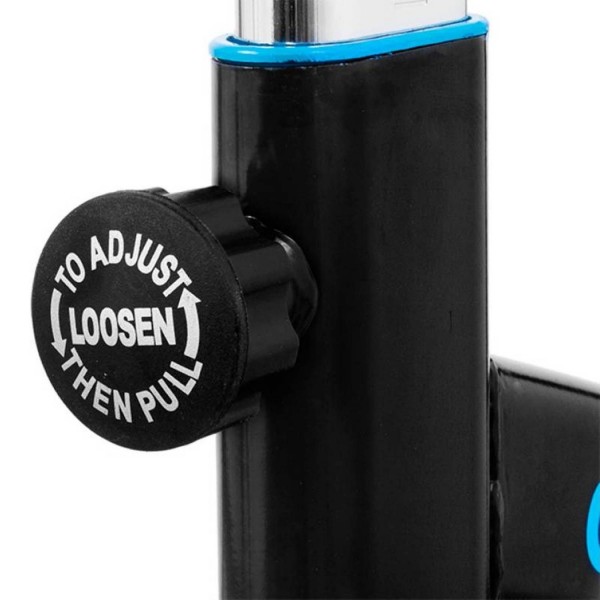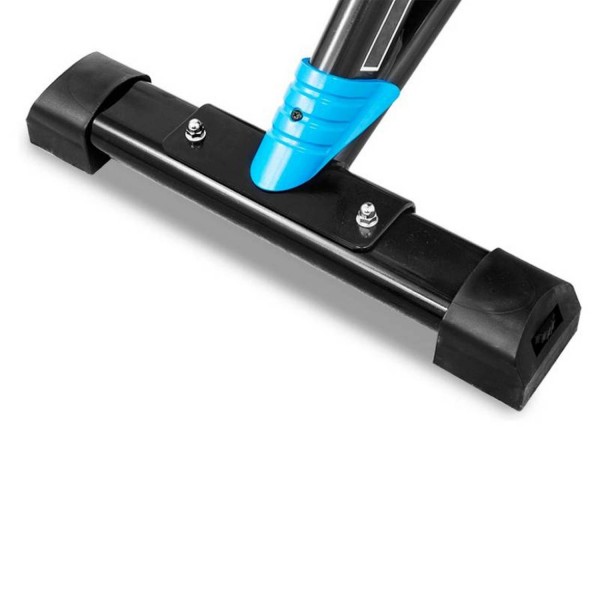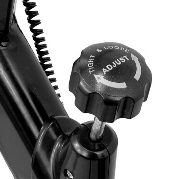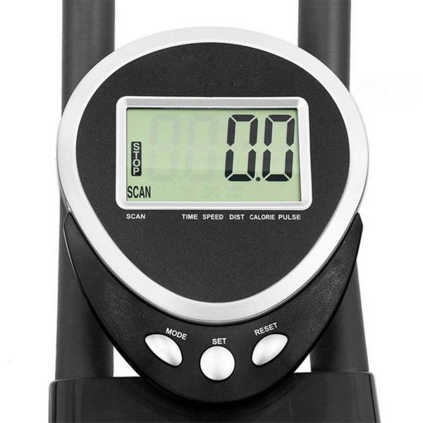 Модель оборудована маховиком с инерционным весом 23 кг. Предлагается настройка седла как по высоте (877-109 см до пола), так и горизонтально. Установленный под сиденьем амортизатор обеспечивает имитацию реальной велосипедной езды. Предусмотрено 5 уровней фиксации руля, который имеет 4 поручня. На внешней паре поручней установлены датчики для проверки работы сердца.