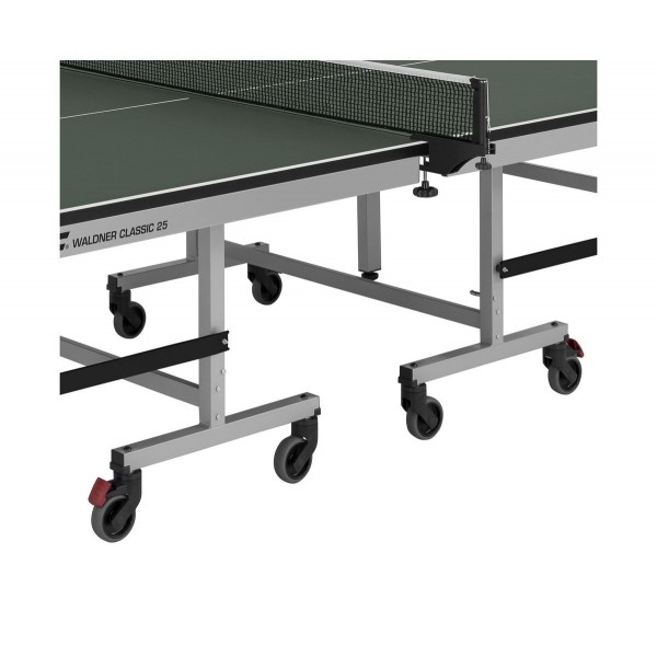 DONIC Waldner Classic 25 - стол для проведения соревнований по теннису от немецкого производителя. Рама обеспечивает надежность и устойчивость всей конструкции. Игровые поверхности изготовлены из ЛДСП и имеют защитный кант. Стол поставляется без сетки. Современная система надежной фиксации позволит безопасно использовать стол. Для удобства предусмотрены транспортировочные ролики.