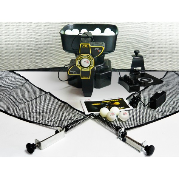 Тренажер Double Fish ТТ-01 поможет в учебе и тренировках по настольному теннису. У робота можно менять скорость и кручение подачи, максимальная загрузка составляет 120 мячей (10 минимум). Время работы устройства 4-40 минут.