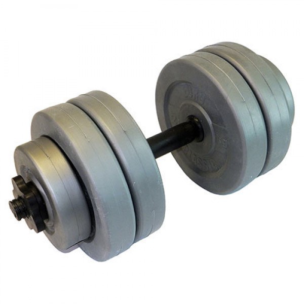 Гантель виниловая оснащена замком-гайкой Вейдера. Рукоять имеет противосользящую насечку (диаметр 25,4 мм). В комплект входит гриф весом 0,22 кг, а также 6 дисков (по 1 и 2 кг).