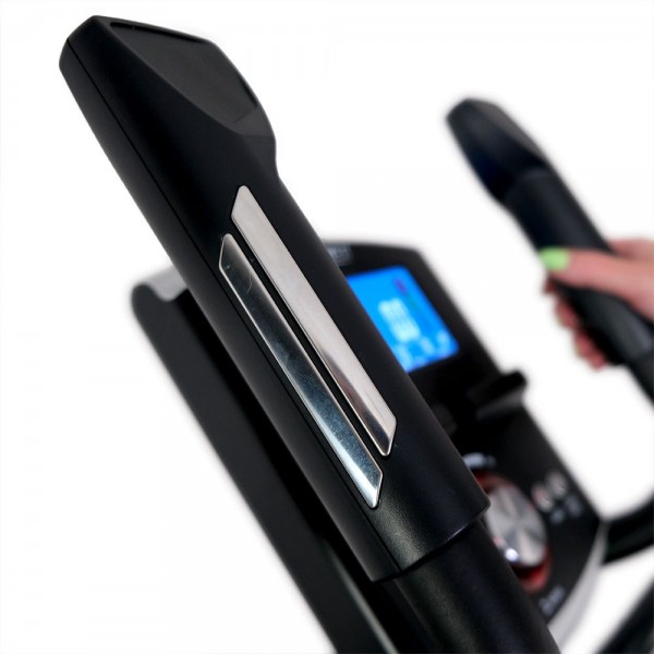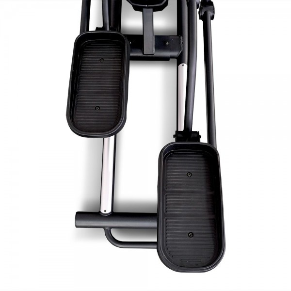 В конструкции работает маховик весом 15 кг (инерционный), есть возможность задать точную настройку нагрузки в Ваттах. Длина шага 48 см и малый межпедальным интервал 11 см обеспечивают комфортное и безопасное использование. Установлены датчики для проверки работы сердца.