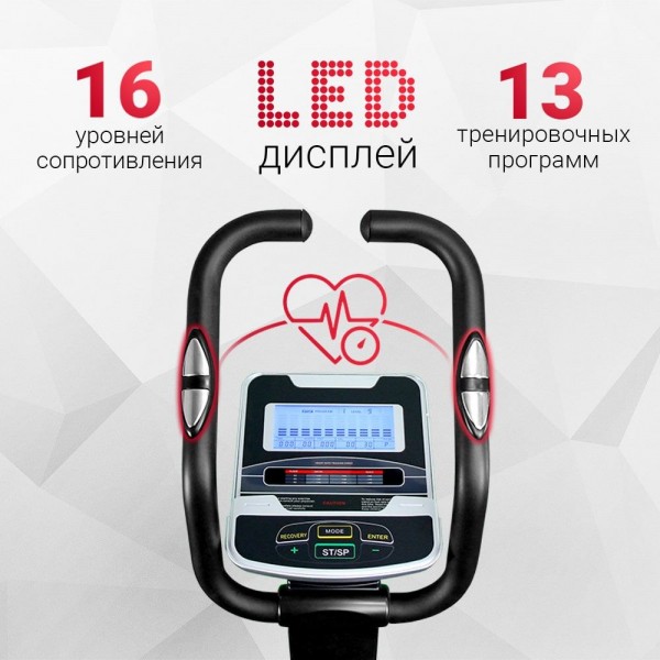 Консоль имеет панель управления и дисплей для демонстрации хода тренировки. Среди 13 программ: