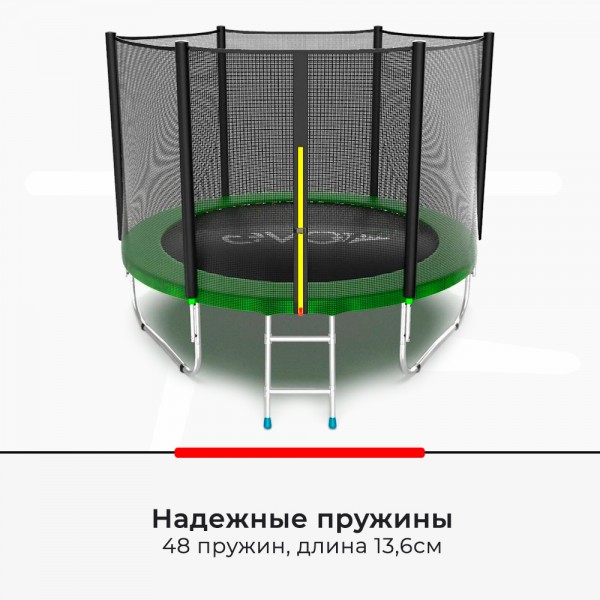 Радость для ребенка и ее друзей. Удобная лестница в комплекте, защитная сетка. Батут пружинит отлично. Устойчивая конструкция рамы - можно устанавливать на не самую ровную поверхность. Собирать легко, главное соблюдать инструкцию. стоит на улице, даже если дождик, то очень быстро высыхает. Все довольны и дети и мы.