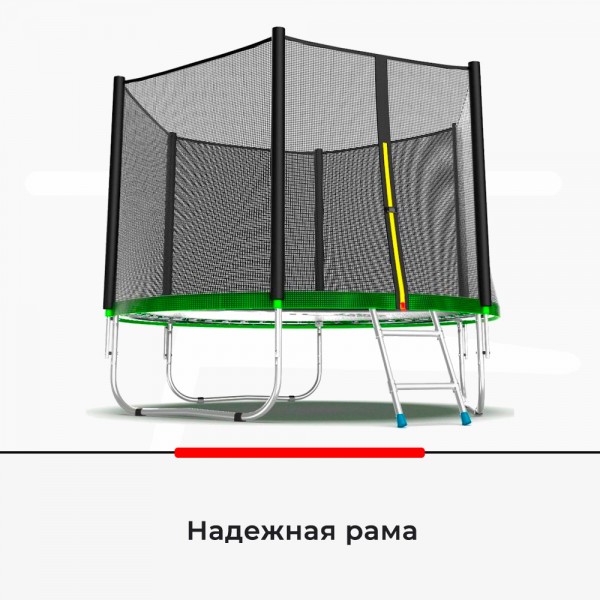 Батут немецкого бренда устойчив к воздействию ультрафиолета и различных погодных условий. Конструкция модели включает: