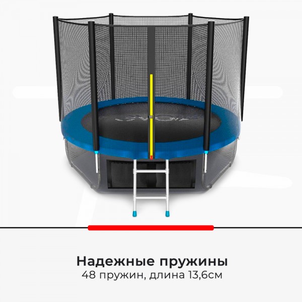 Батут EVO Jump EXTERNAL – надежная и простая в установке конструкция для всей семьи. Модель предлагает в подарок носки, поверхность которых имеет противоскользящую защиту из силикона. Защитная сетка с внешним креплением захватывает зону пружин.