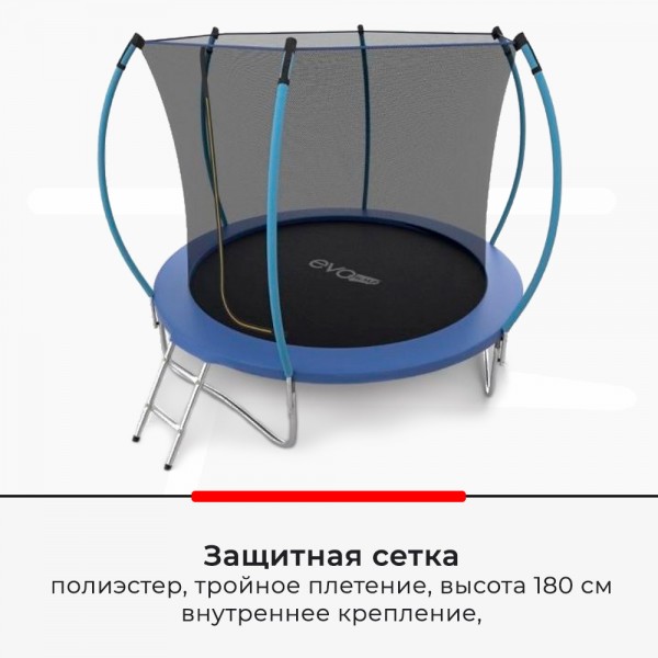 Батут EVO Jump INTERNAL предлагает простую в монтаже и безопасную в эксплуатации конструкцию, которая станет любимым местом отдыха и тренировки для всей семьи. Модель комплектуется подарочными носками с противоскользящей поверхностью из силикона. Защитная сетка с внутренним креплением исключает зону пружин, что считается наиболее безопасным.