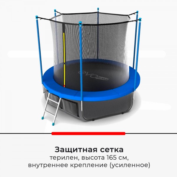 Батут EVO Jump INTERNAL предлагает простую в монтаже и безопасную в эксплуатации конструкцию, которая станет любимым местом отдыха и тренировки для всей семьи. Защитная сетка с усиленным внутренним креплением исключает зону пружин, что считается наиболее безопасным.