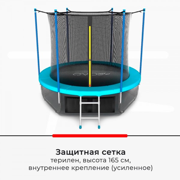 Батут EVO Jump INTERNAL предлагает простую в монтаже и безопасную в эксплуатации конструкцию, которая станет любимым местом отдыха и тренировки для всей семьи. Защитная сетка с усиленным внутренним креплением исключает зону пружин, что считается наиболее безопасным.