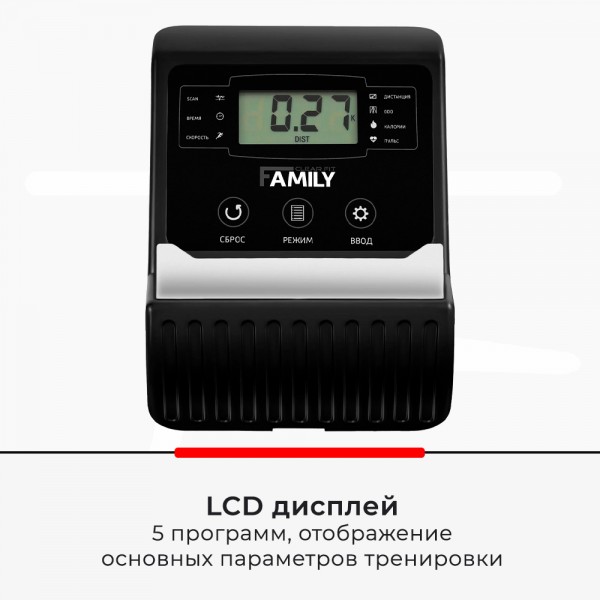 Family FR 20 – домашний горизонтальный велотренажер с базовым выбором программ и магнитным сопротивлением. Ограничение веса - 100 кг.