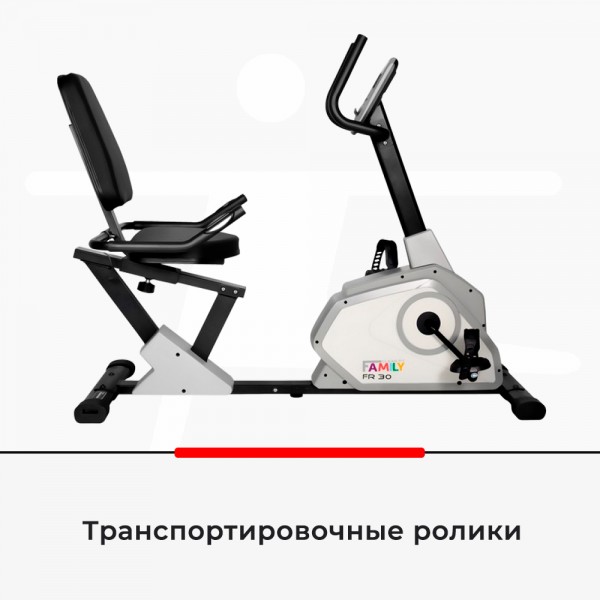 Family FR 30 – велотренажер с горизонтальной посадкой и оптимальной функциональностью консоли. Максимальный вес пользователя - 110 кг.