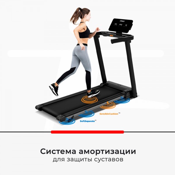 Система амортизации включает 6 эластомеров SoftSeparate и 2 SensibleCushion™ по центру, в результате достигается средняя жесткость полотна, которая позволяет сохранить суставы здоровыми. Скорость модели регулируется на консоли.