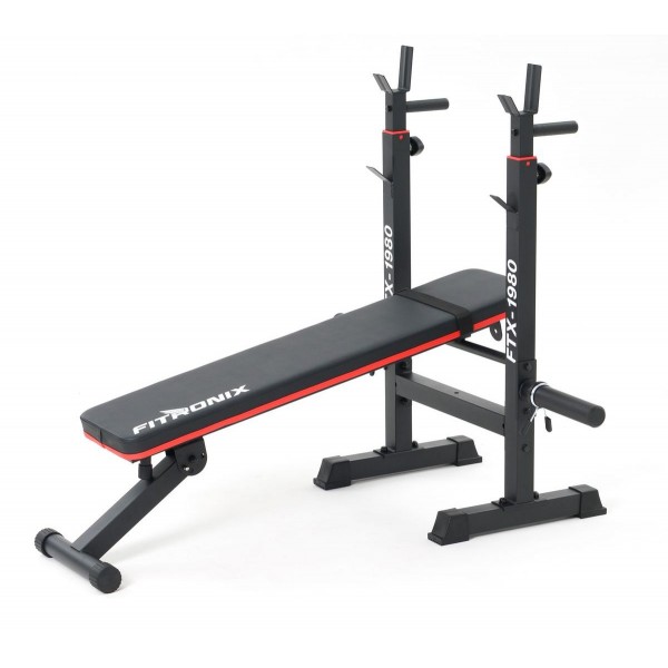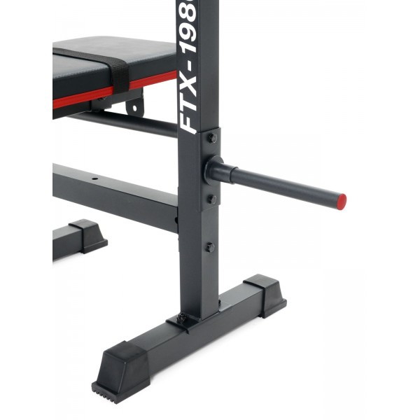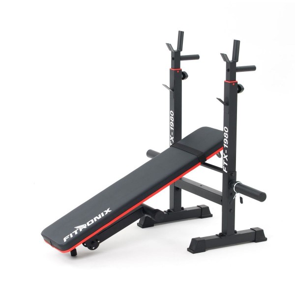 Скамья FITRONIX ftx-1980 выполнена в классической черно-красной цветовой гамме и разработана для установки на дому. Скамья с регулируемыми стойками будет отличным выбором для тренировок со штангой.
