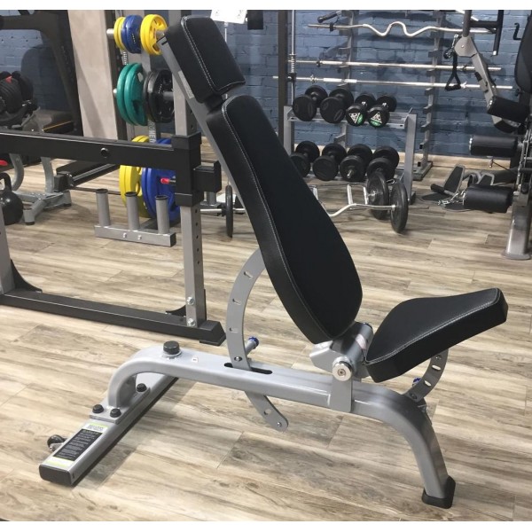 GROME Fitness AXD5039A позволяет менять угол наклона сиденья и спинки, раскладывая, при необходимости, скамью горизонтально. Подходит для спортзалов любой загрузки.