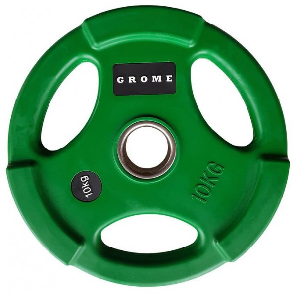 Весовой диск Grome выполнен из обрезиненного материала. Имеет три удобных хвата.