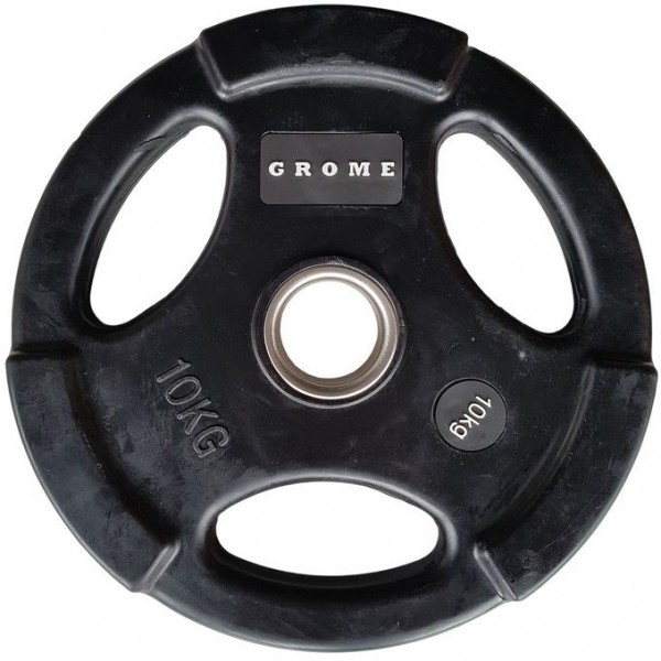 Весовой диск Grome выполнен из обрезиненного материала. Имеет три удобных хвата.