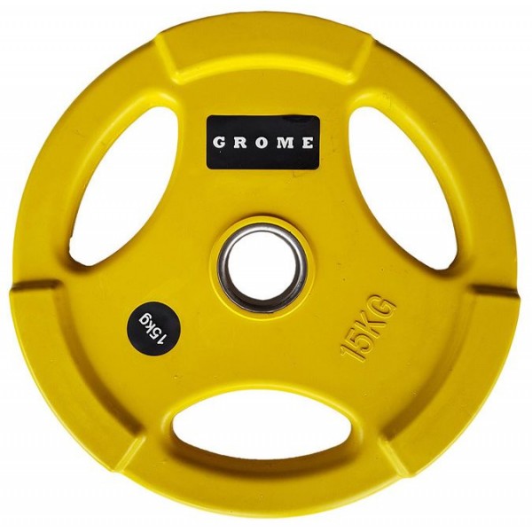 Весовой диск Grome выполнен из обрезиненного материала. Имеет три удобных хвата.