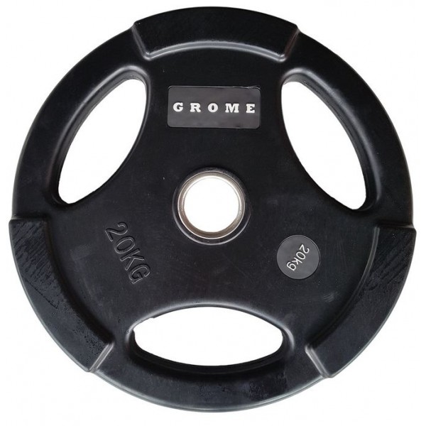 Весовой диск Grome выполнен из обрезиненного материала. Имеет три удобных хвата.