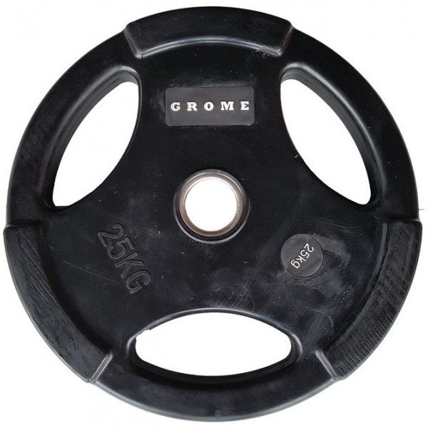 Весовой диск Grome выполнен из обрезиненного материала. Имеет три удобных хвата.