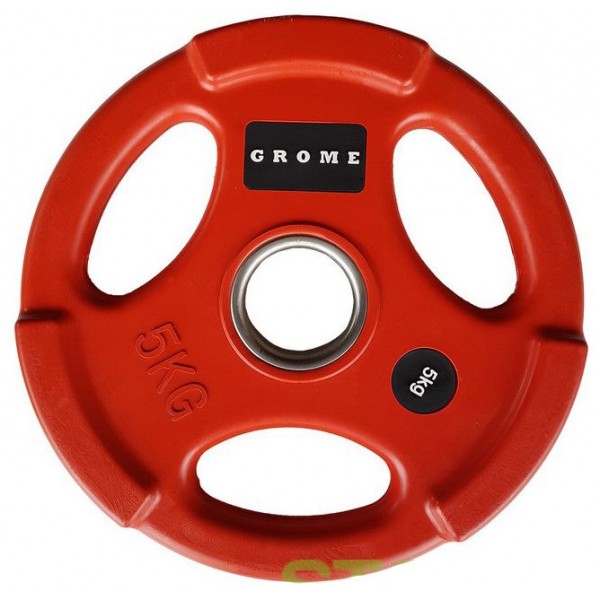Весовой диск Grome выполнен из обрезиненного материала. Имеет три удобных хвата.