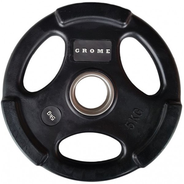 Весовой диск Grome выполнен из обрезиненного материала. Имеет три удобных хвата.