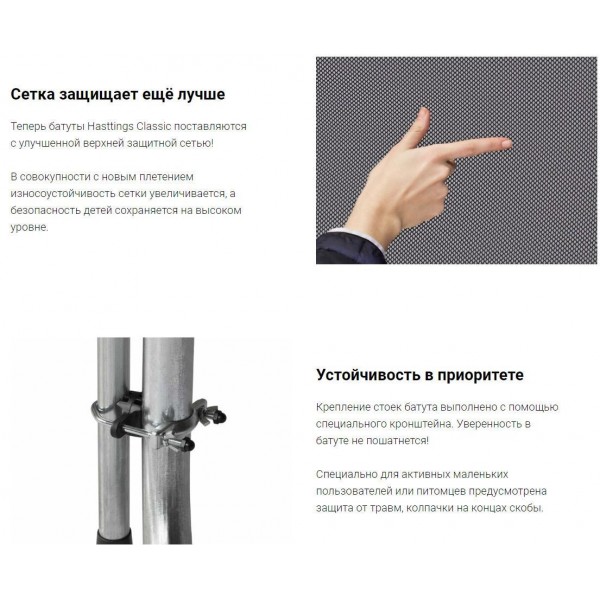 Батут Hasttings CLASSIC – надежная и безопасная конструкция, а также яркий внешний дизайн для всей семьи. Модель с внутренним креплением защитной сетки, лестницей и нижней сетью.