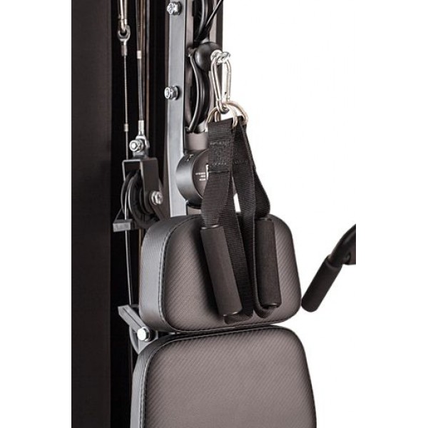 Тренажер оснащен стеком на 70 кг, все плиты имеют виниловое покрытие для лучшей шумоизоляции. Мультистанция предлагает: