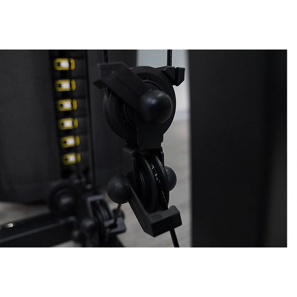 Стек общим весом 70 кг находится в защитном кожухе, а сами плиты шумоизолированы виниловым покрытием. Мультистанция предлагает: