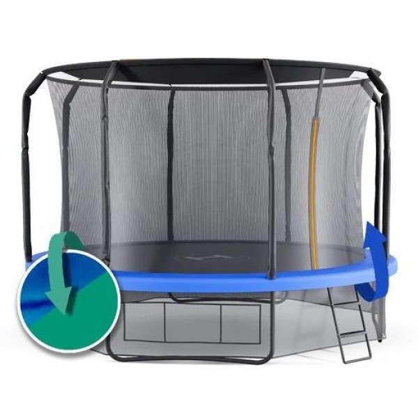 Рама конструкции защищена от ржавчины двойной оцинковкой и порошковым окрашиванием. Крепление сетки Max-Lock обеспечивает безопасность, исключая попадание человека в щель за прыжковым полотном. Батут предлагает:
