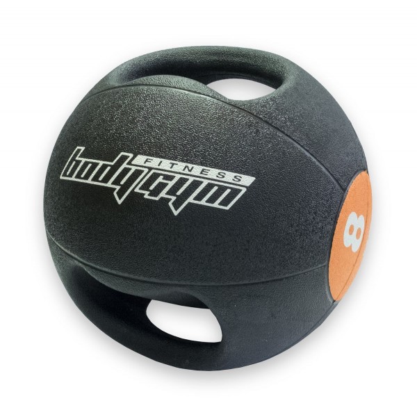 Медицинбол HouseFit 1221-30-8 имеет удобные хваты и вес 8 кг.
