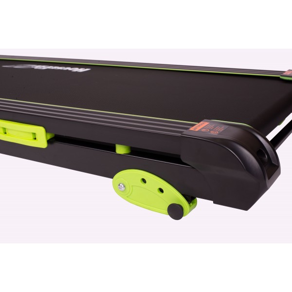 Скорость движения на дорожке может достигать 16 км/ч, работает мотор на 2,5 л.с. Наклон изделия может быть задан в трех вариантах, переключение ручное. Четыре эластомера бегового полотна помогают сохранить здоровье суставов. На поручнях расположены сенсоры проверки работы сердца.